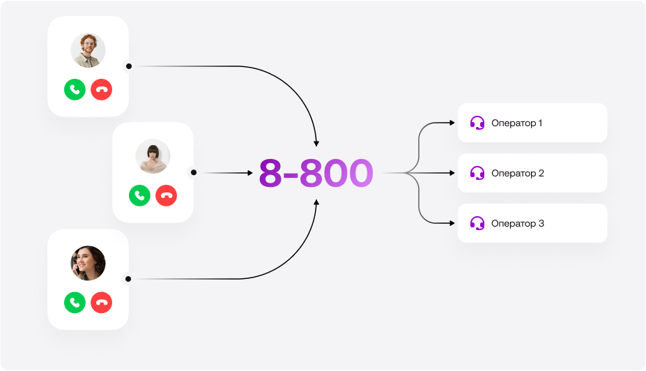 8 800 называют федеральными или многоканальными, они не привязаны к конкретному региону и физическому расположению компании. Такие номера еще называют toll-free — «бесплатный вызов»: звонки на них будут бесплатными для абонентов и с мобильного, и с городского телефона. За связь платит компания-владелец.